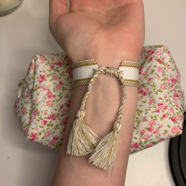 De armband is te verstellen door aan de twee kwastjes te trekken. Zo past iedereen deze trendy armband!
